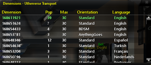 From the list, click any dimension you'd like to enter it. You can see each dimension's orientation and language settings, as well as whether or not it's reached its population capacity.